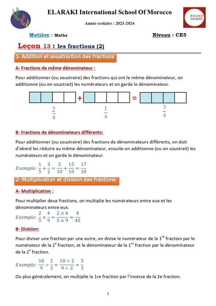 Leçon 03 : L’addition et la soustraction des nombres entiers et décimaux