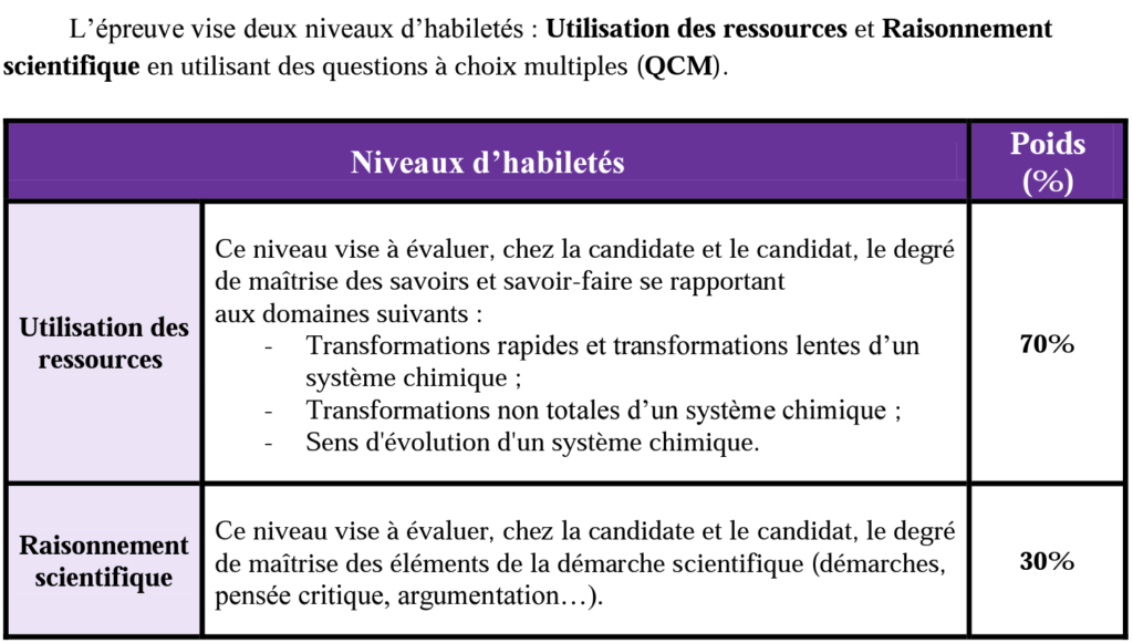 2. Niveaux de maîtrise (habiletés) visés par l’épreuve du concours en chimie