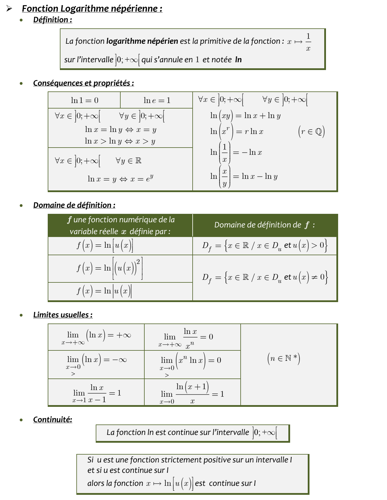 Fonctions logarithmes