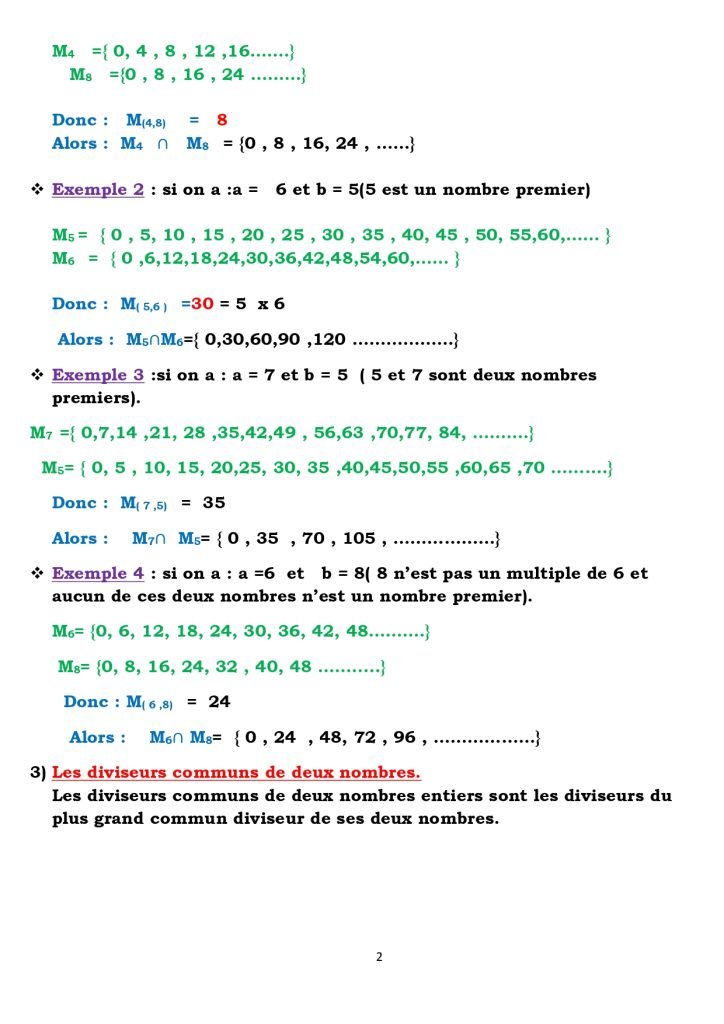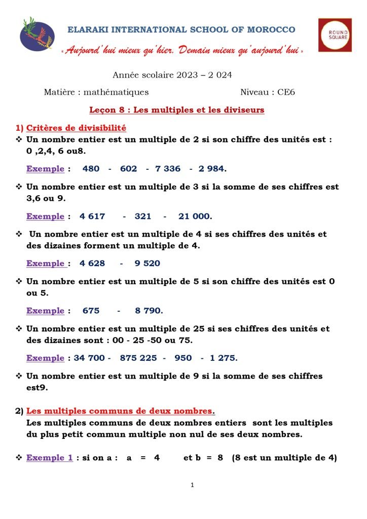 Leçon 8 : les multiples et les diviseurs des nombres.