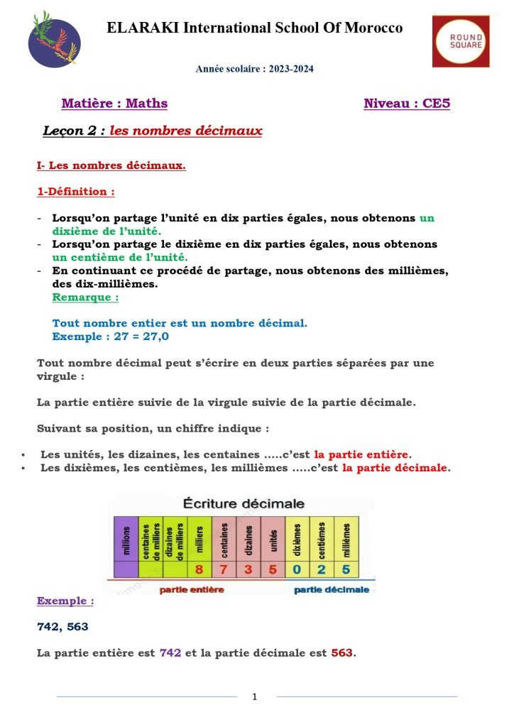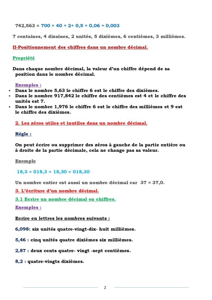 Leçon 02 : Les nombres décimaux