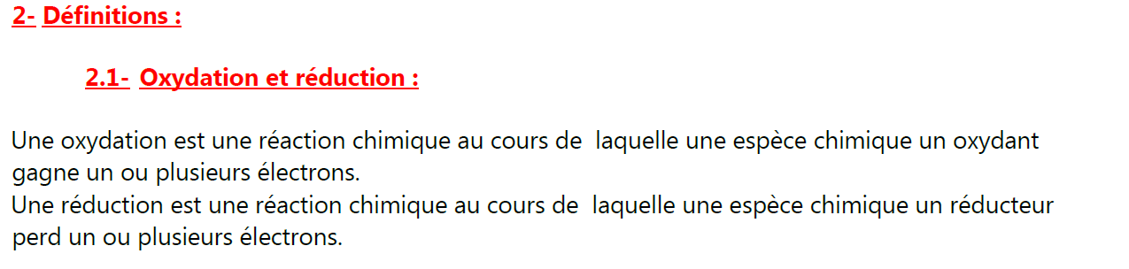 \text { oxydant }+n e^{-} \rightleftarrows \text { réducteur }