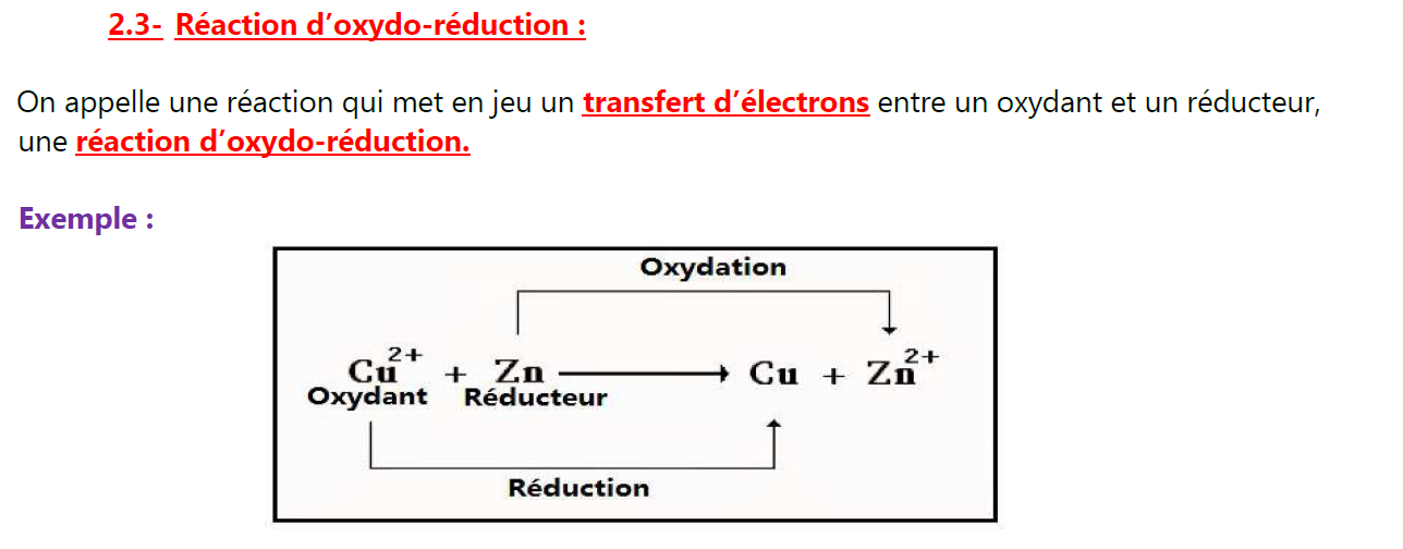 On appelle une réaction qui met en jeu un transfert d’électrons entre un oxydant et un réducteur, une réaction d’oxydo-réduction.