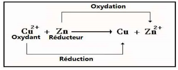 Une réaction d’oxydo-réduction met en jeu deux couples redox. Elle consiste en un transfert d’un ou plusieurs électron(s) du réducteur de l’un des couples à l’oxydant de l’autre couple.