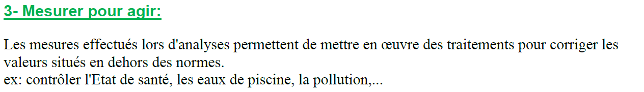 Les mesures effectués lors d’analyses permettent de mettre en œuvre des traitements pour corriger les valeurs situés en dehors des normes.