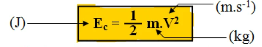 Un système en mouvement possède de l’énergie. L’énergie due à la vitesse est appelée : énergie cinétique : Ec.