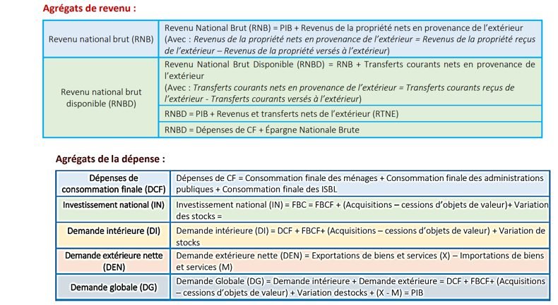 LES AGREGATS ET LES LIMITES DE LA COMPTABILITE NATIONALE